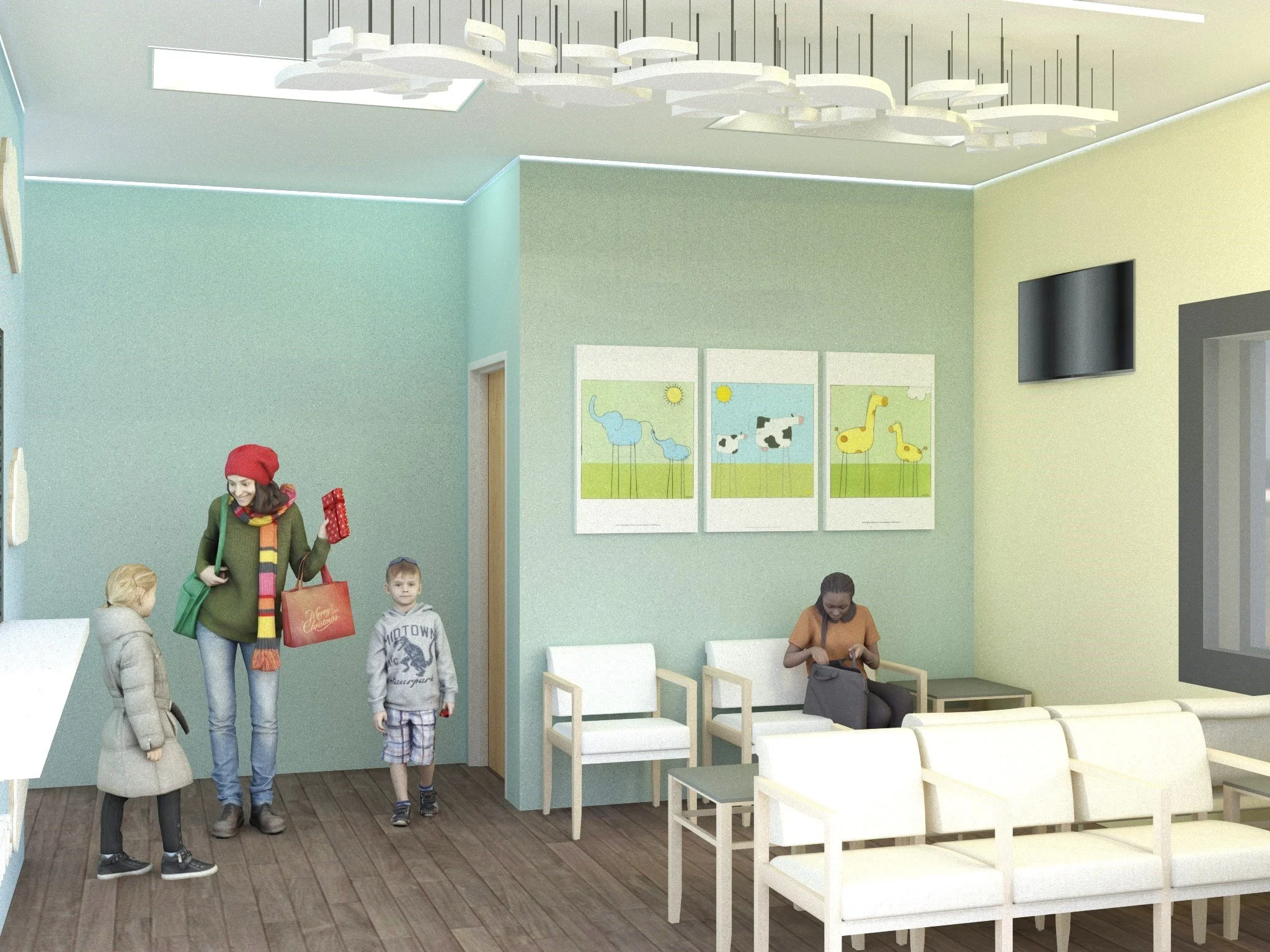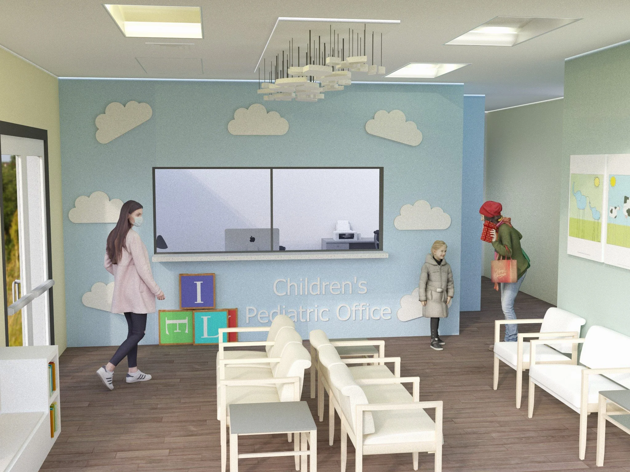 The concept for this pediatric office was to create a space that was influenced by patient lead design and helped improve the well being of all who entered into the space. This new approach to the design of hospitals and healthcare facilities puts patients' needs front and center. It recognizes the fact that the built environment has the ability to have a positive impact on patients' health, wellbeing, and recovery. Color has long been known to have a beneficial effect on wellbeing and healing. With this in mind, it makes sense to select a soothing col or palette featuring cool tones and muted shades. It is also useful to design healthcare environments with a view to allow as much natural light into the space as possible because of its beneficial links to improved energy and wellbeing. By having a children’s seating area this creates an inviting and comfortable environment that reduces stress for children, and by having bariatric seating this creates a welcoming environment for all patients.